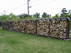 さて、本日訪問の薪棚は、緑の芝生もまぶしい自宅敷地と公道の境目に薪棚を作り、生垣や塀の役割も兼ねさせて、薪のストックと同時にプライバシーも確保していました。