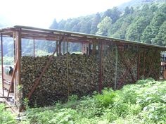 それもそのはず、大分市内にある薪屋さんの貯木場ですから、自社所有の雑木山に近い広い場所に大きな倉庫が建っていて、この時で10トンぐらいのストックがあったでしょうか。 建物一杯に薪を積むと、おそらく50トンとか60トンとか・・・個人で消費するとすれば、20年分以上!でしょうか。「一生分」と言ってもいいかも。