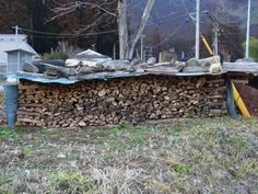 決してきちんと架けられた屋根ではありませんが、基本的にはこれくらいの雨仕舞でもOKです。梅雨の長雨や台風時の横殴りの雨によって、クロカビが発生して薪の木口が黒くなったりしますが、 売り物ではなく自分で使う薪なんだから、ちっちゃい事は気にするな、それワカチコ・・・という考え方もアリです。