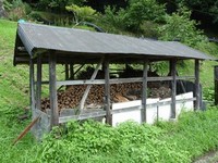 田舎道のかたわらにひっそりとたたずむ薪小屋です。