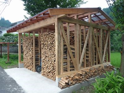外観や中の薪まで含めて、今までご紹介した中でも最高クラスの薪小屋といえるでしょうか。