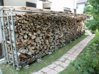 当店の地元別府市にお住まいのユーザー様の薪棚です。 長さ約9メートル、高さ約1.7メートル棚に長...